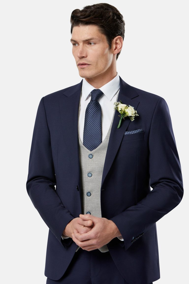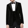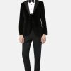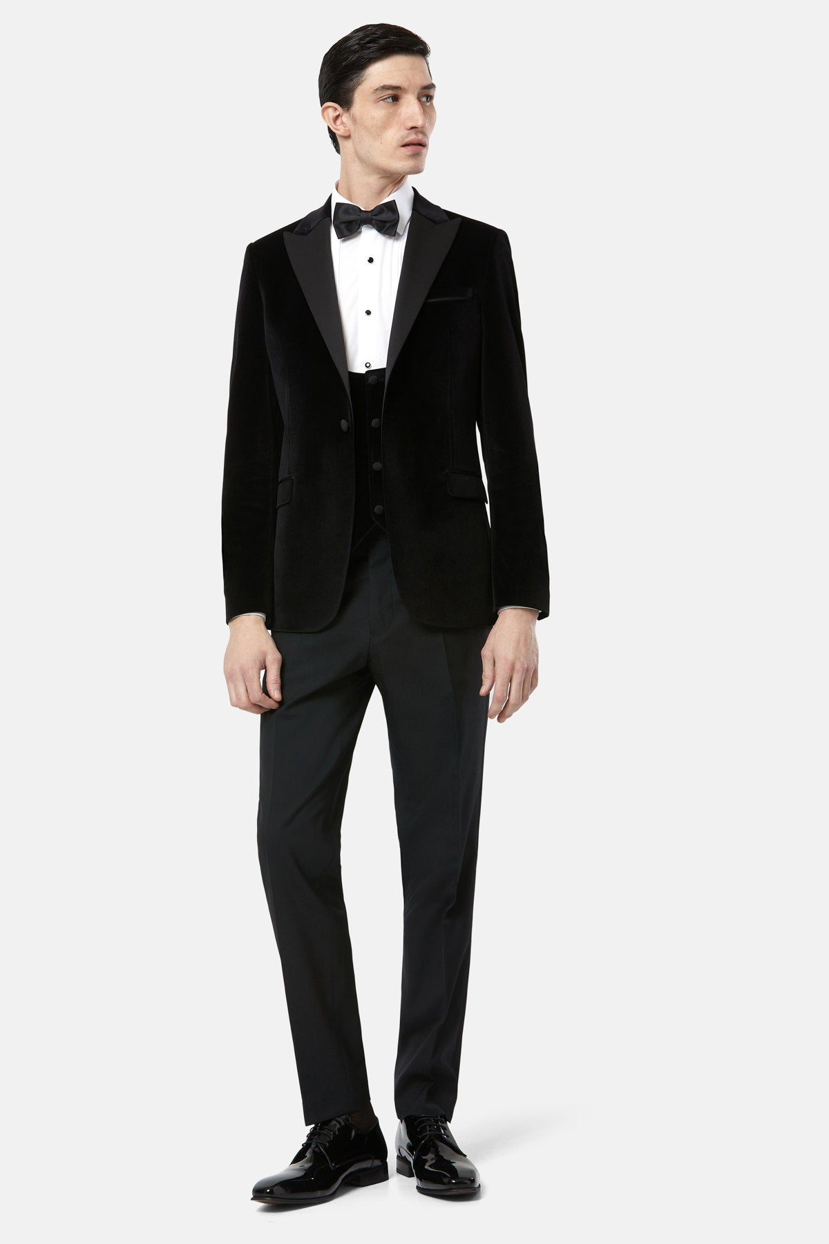 An elegant tuxedo by Benetti Menswear. Securing with a single-button closure, and matched with our new low scoop waistcoat, this refined tuxedo is designed in soft velvet. Silk-blend accents add an elevated touch to this tailored fitting-piece.