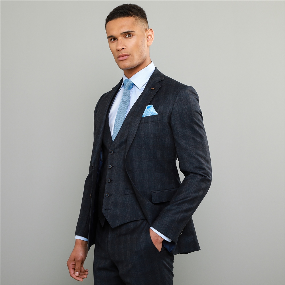 This high quality pure new wool check with milled finish is Magee 1886 latest Mix & Match offering. This suit jacket is ideal for both work or formal occasions. The rich navy blue is crossed with chocolate brown checks.