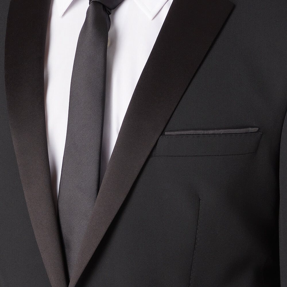 Look perfectly put together for your special occasion with the sophisticated Remus Uomo Men’s Rocco Slim Suit Jacket. This stunning black suit jacket features slim notched satin lapels, a single-breasted two-button front, and side vents for a comfortable fit.