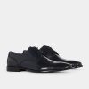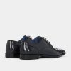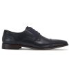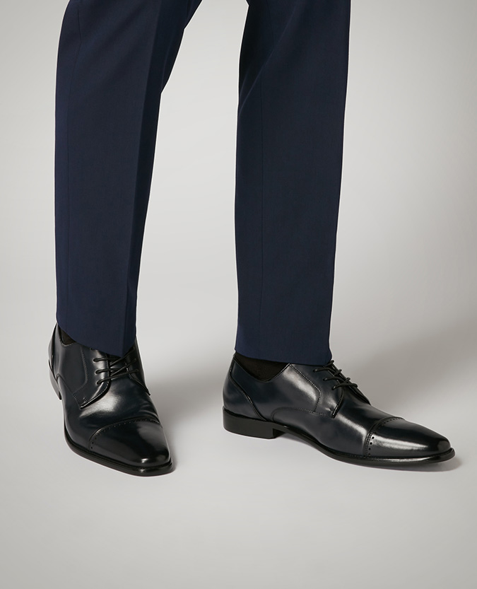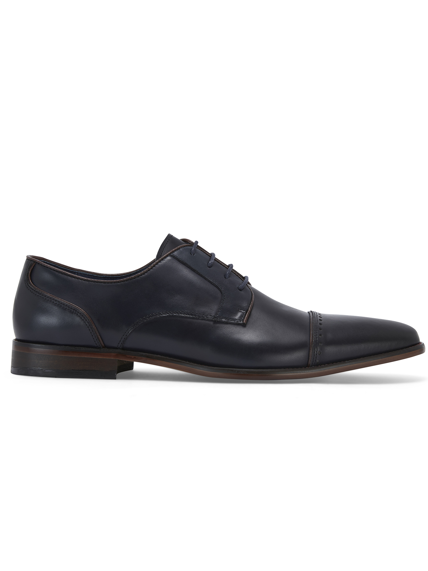 Navy leather Derby shoe with punched brogue detail, leather sock and lining and synthetic sole.